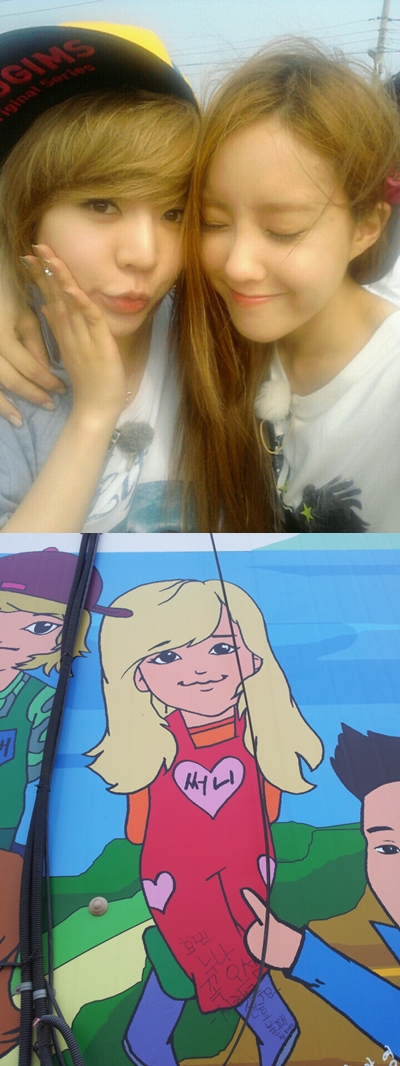 공개된 사진 속 효민과 써니는 KBS '청춘불패' 촬영 중인 듯 편안한 옷차림이다. 두 사람은 찰싹 붙어 다정한 모습을 연출하고 있다. 써니는 눈을 동그랗게 뜨고 입술을 앞으로 모은 귀여운 표정으로 카메라를 응시하고 있고 효민은 눈을 감은채 미소 짓고 있다.
