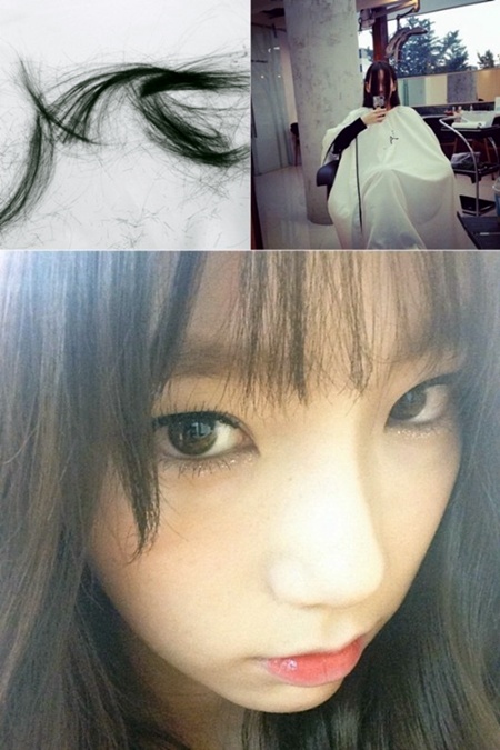 태연은 자신의 인스타그램 계정을 통해 "잘가라"라는 글과 함께 앞머리를 자르는 과정이 담긴 세 장의 사진을 공개했다.