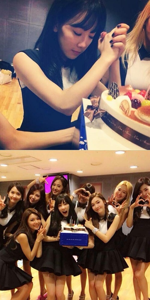 사진 속에는 케이크를 들고 활짝 웃고있는 태연과 태연 옆에서 깜찍한 포즈를 취하고 있는 소녀시대 모습이 담겨져 있다. 또 다른 사진 속 태연은 초가 켜진 케이크 앞에서 두 손을 모으고 기도를 하고 있다.