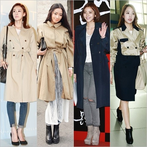 배우 이다희는 베이지 컬러 트렌치코트와 스키니진을 깔끔하면서 세련된 스타일을 완성했다. 또한 손담비는 짙은 컬러 트렌치코트에 찢어진 데님 팬츠와 화이트 티셔츠로 꾸미지 않은 듯 스타일리시한 면을 강조했다.