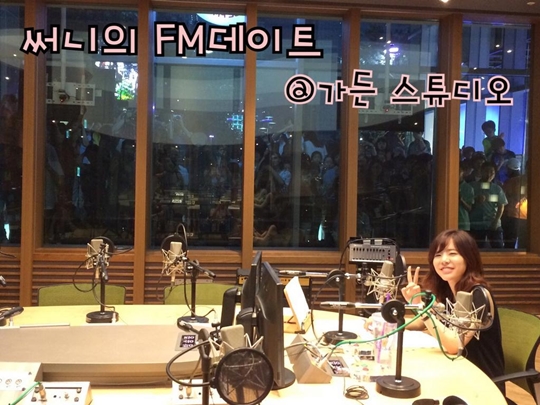 공개된 사진에는 써니가 상암 MBC 신사옥에 위치한 가든스튜디오에 앉아 라디오를 진행하고 있는 모습이 담겨 있다. 써니는 카메라를 향해 손가락으로 브이를 그리며 환하게 웃는 모습으로 눈길을 모았다.