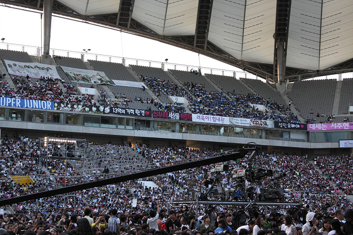 아시아송페스티벌이 진행된 상암경기장 그라운드에서 바라본 현수막 사진들 입니다.