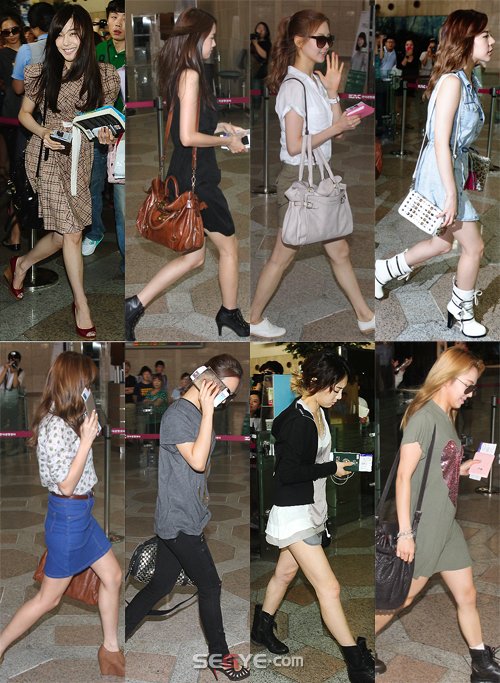 소녀시대는 교통사고로 인해 활동을 중단한 수영을 제외하고 8명의 멤버들만 지난 1일 서울 김포국제공항을 통해 출국했다. 이날 소녀시대 멤버들은 대부분 숄더백을 맨 채 취재진의 플래시 세례를 받았다.