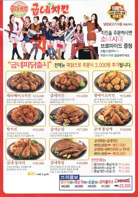 굽네치킨 9월27일부터 소녀시대 브로마이드 증정