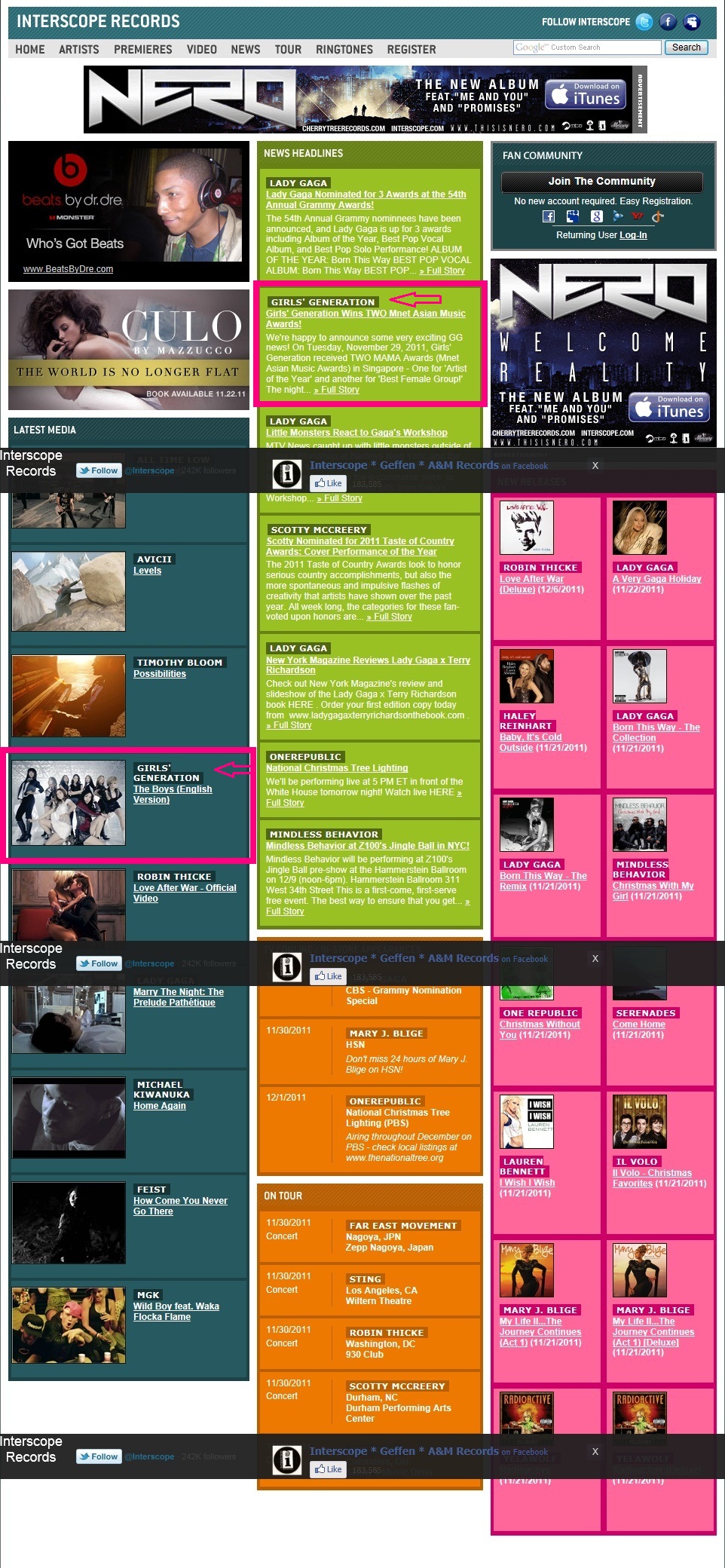 인터스코프 공홈에 올라온 소녀시대