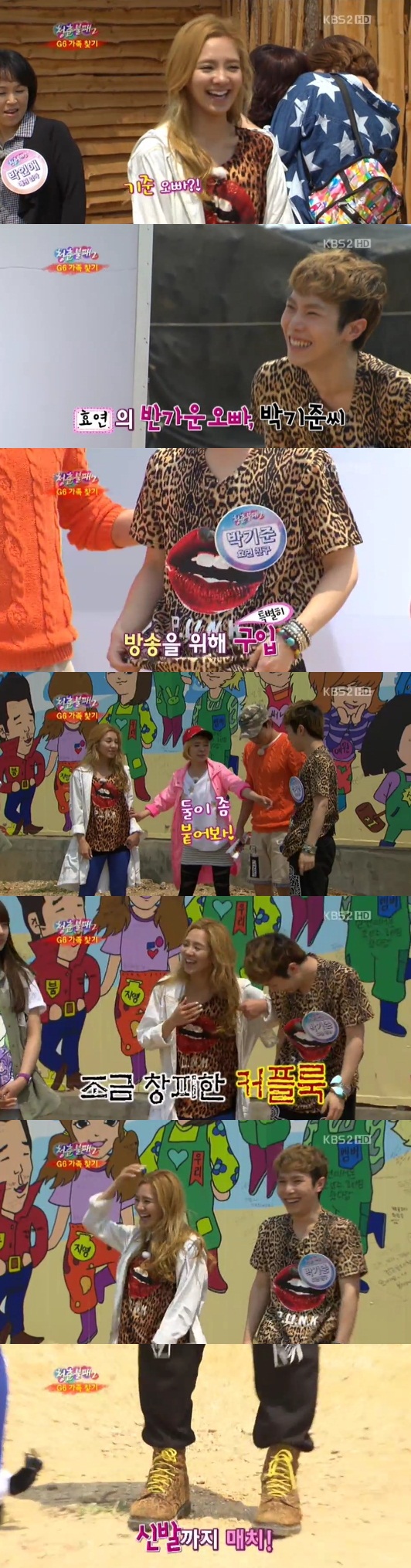 방송 출연을 위해 박기준 씨를 기다리던 출연진은 깜짝 놀랐다. 그도 그럴 것이 효연과 비슷한 호피무늬 티셔츠를 입고 나온 것. 우연일지 모르지만 이날 효연 또한 상의로 호피무늬 셔츠를 입어 마치 커플룩을 연상케 했다.
