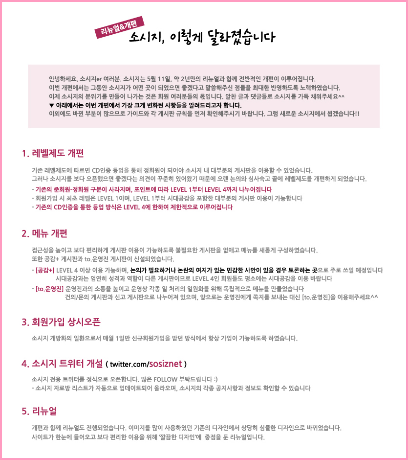 11.05.11 두번째 리뉴얼 및 개편 완료 - 소시지, 이렇게 달라졌습니다