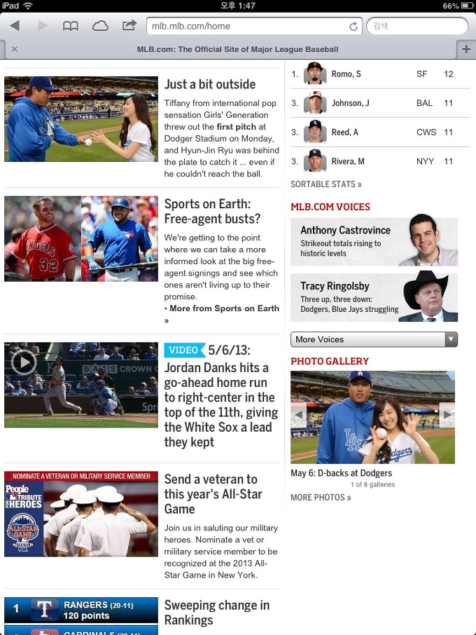 130506 LA다저스 티파니 시구 :: MLB홈 영상1 + 직캠 11개