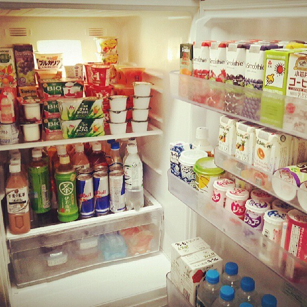 일본 숙소 냉장고 일까요? ^^ 일제품이 굉장히 많아요~! 맛있겠다........ㅎㅎ