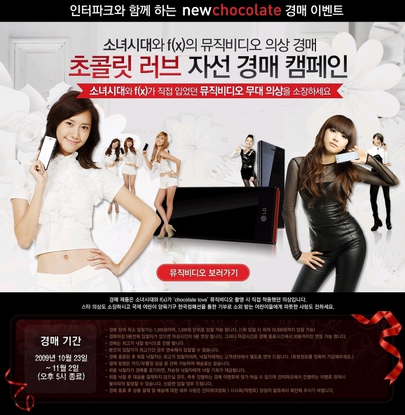 인터파크에서 소녀시대와 f(x)멤버들이 초콜릿러브 뮤직비디오때 입었던 의상을 경매하네요.